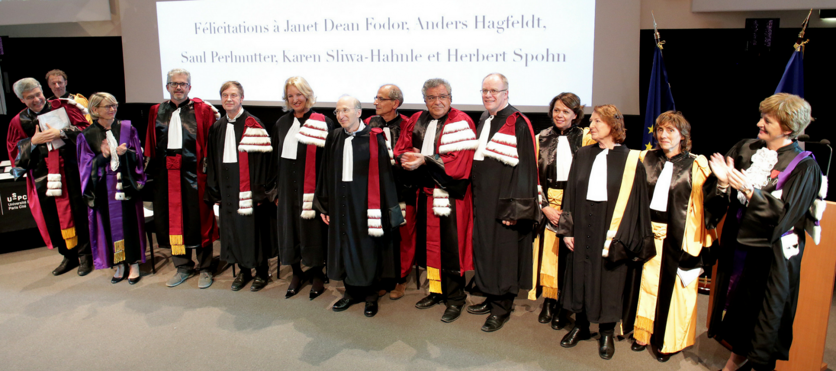 Mardi 17 octobre, l'université Paris Diderot a remis le grade de Docteur Honoris Causa aux professeur.e.s Janet Dean Fodor, Anders Hagfeldt, Saul Perlmutter, Karen Sliwa-Hahnle et Herbert Spohn.
